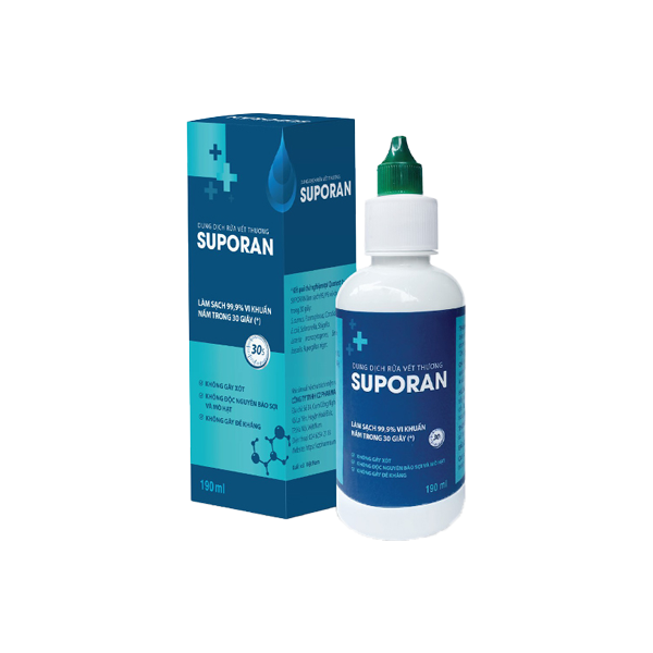 Suporan là dung dịch điện hóa công nghệ New có thành phần chính là: H2O, NaCl, HClO, H2O2, O3, HO2, OH, CIO2.