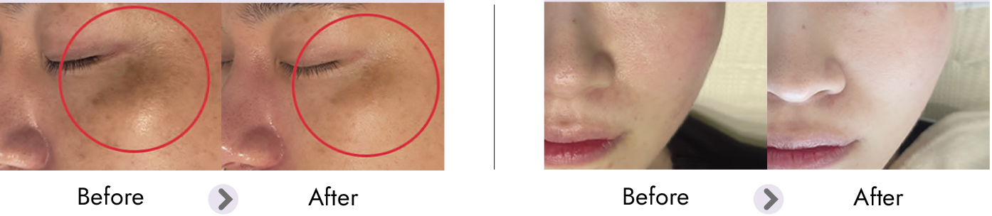 Hiệu quả lâm sàng: Kết quả rõ rệt nhất về độ trắng sáng và giảm tàn nhang khi so sánh hình ảnh Trước (Before) và Sau (After) liệu trình.