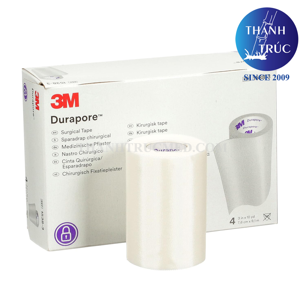 Băng keo y tế 3M Durapore 1538-3 Nền vải dạng lụa, phủ keo có độ kích ứng da thấp. Kích thước 7,5cm x 9,1m
