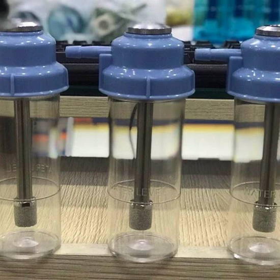 Bình tạo ẩm oxy với nút kim loại nổi trên mặt nắp.