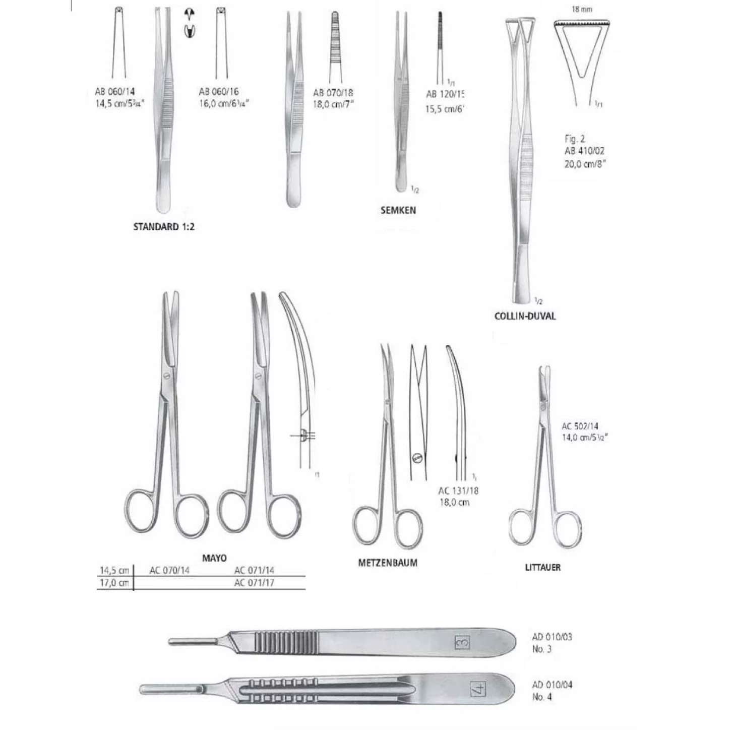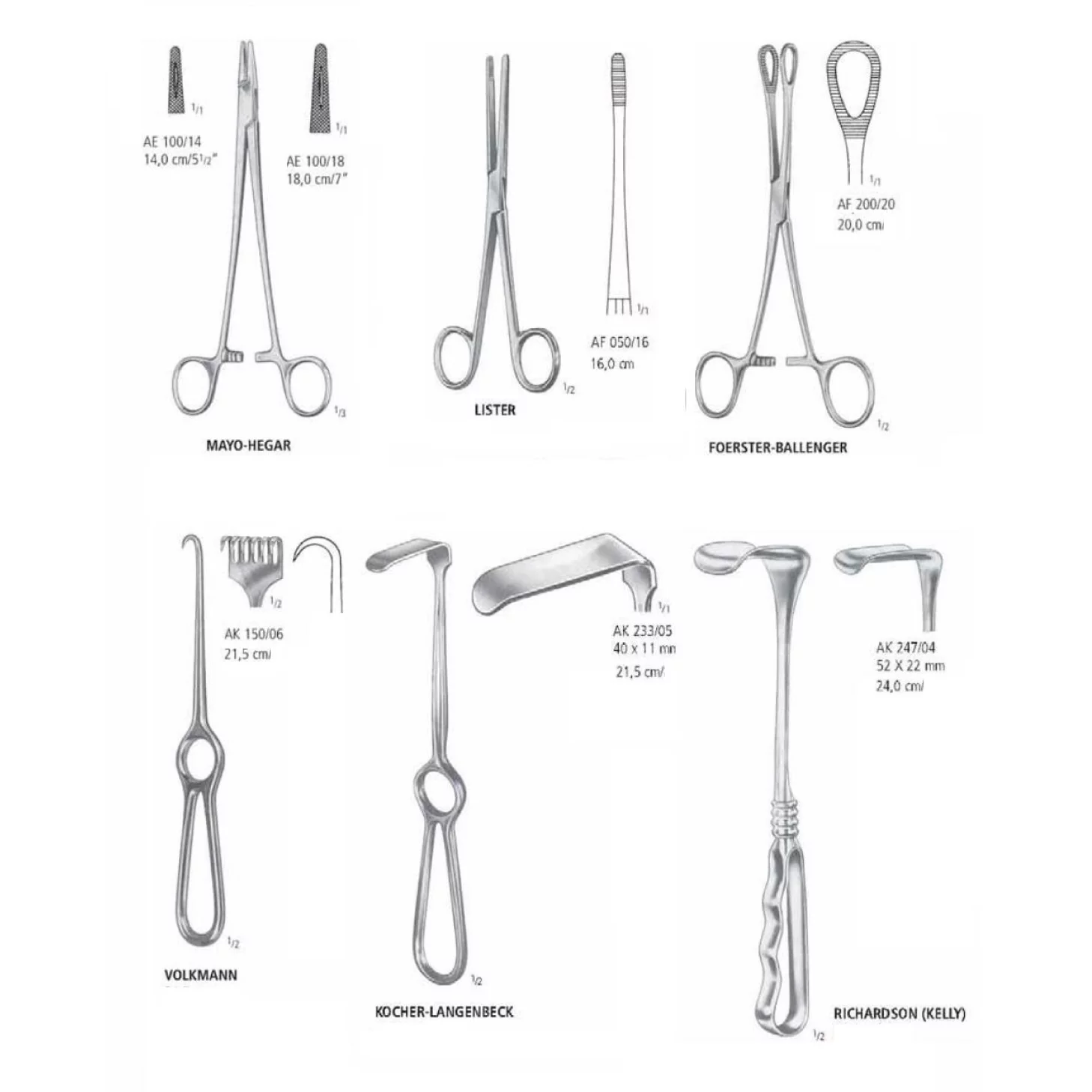Bộ sản phẩm dụng cụ đại phẫu ngoại tổng quát bao gồm: