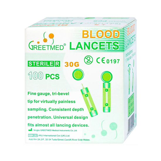 + Bút gắn kim lấy máu Greetmed được dùng cho các loại bút lấy máu của máy đo đường huyết. Thân kim tròn, được tiệt trùng từng kim, hạn sử dụng lâu dài.