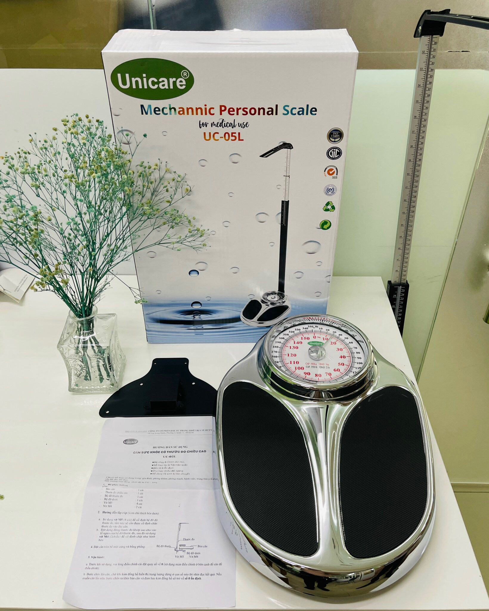 Cân đo sức khỏe có thước đo chiều cao Unicare UC-05L có thể được sử dụng gia đình, phòng khám, phòng mạch, trung tâm y tế,... Môi trường hoạt động từ 5-35ºc.