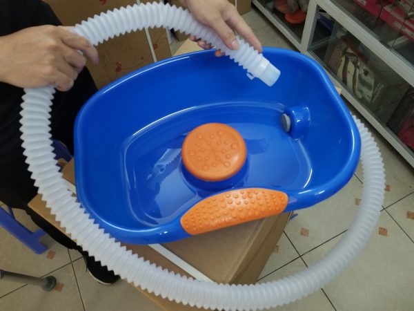 + Có thể dùng cho người bệnh nằm trên giường đặt chậu lên ghế và nối ống kéo dài ra xô nước để thoát nước tiện vô cùng.