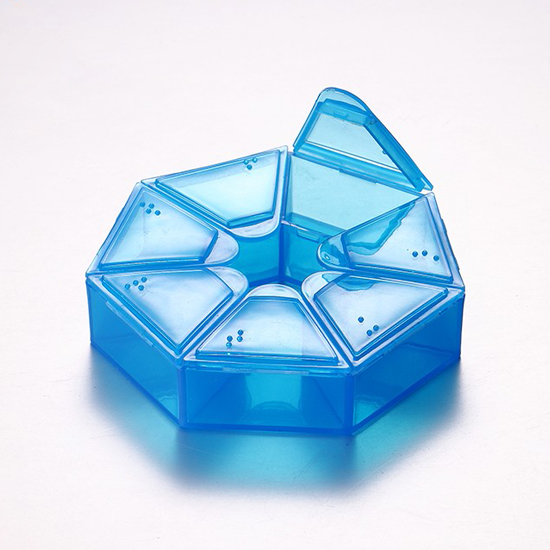 + Mỗi hộp đơn có 4 ngăn chứa chữ nổi “Sáng – Trưa – Chiều – Tối”, giúp người dùng phân biệt các cử thuốc theo chỉ định của bác sĩ.