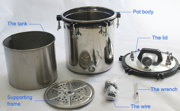 - Nguyên lý nồi hấp 18L UC-280A là dùng điện trở nhiệt để đun nước, làm bốc hơi và sử dụng hơi nước để tiệt trùng các sản phẩm như thiết bị y tế, băng phẫu thuật,…