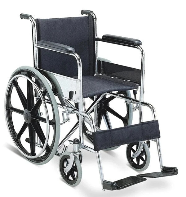 Xe lăn Foshan FS-809B Khung thép mạ crom có thể xếp lại, phần tựa tay và tựa chân cố định, bánh trước và sau mâm đúc, lốp đặc.