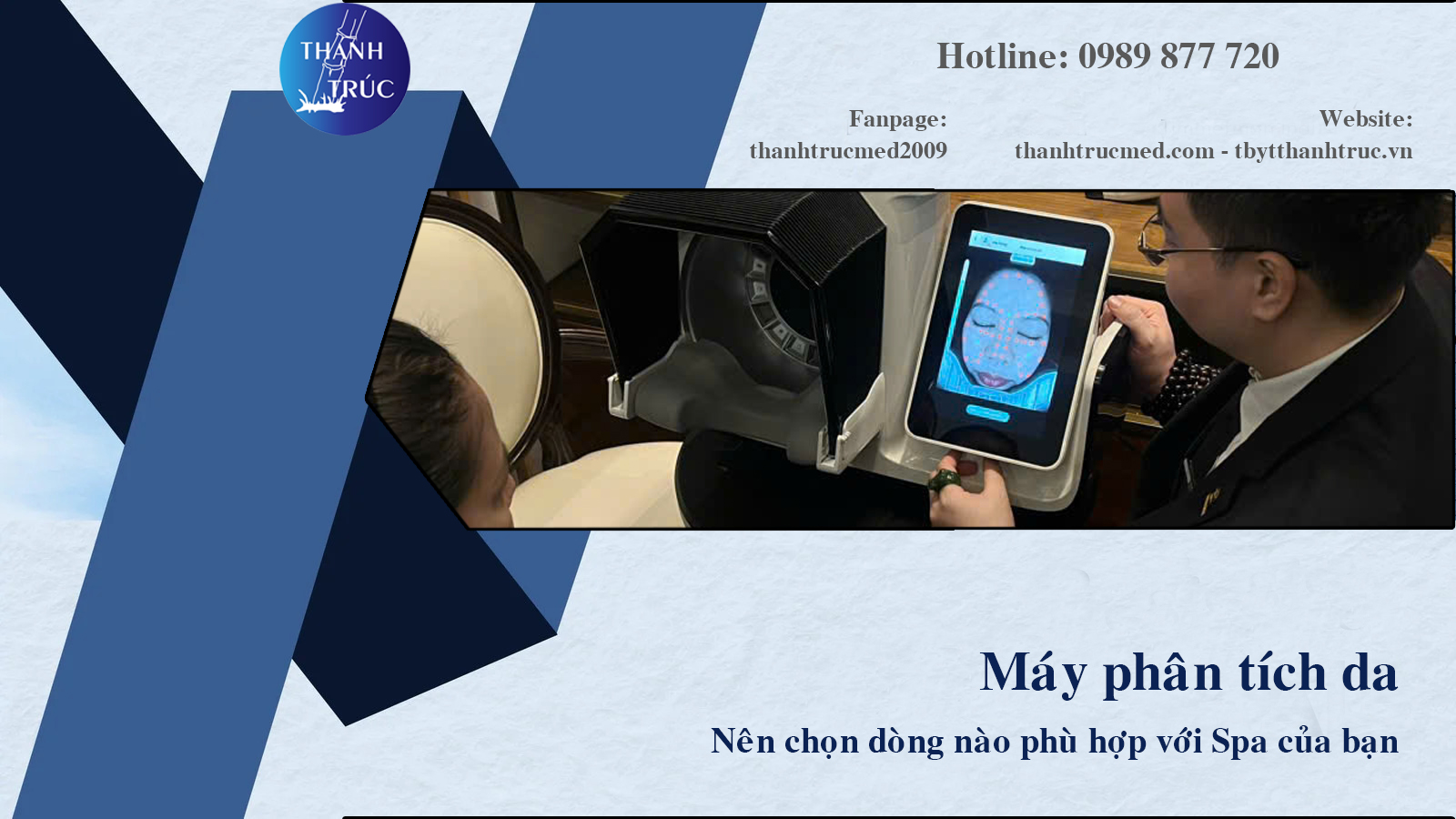 Khi đầu tư máy phân tích da, bạn có thể tìm hiểu nhà cung cấp uy tín như Thiết bị y tế thẩm mỹ Thanh Trúc, nơi không chỉ cung cấp thiết bị chính hãng Bitmoji mà còn hỗ trợ đào tạo, bảo hành, và đồng hành cùng spa trong quá trình ứng dụng công nghệ vào kinh doanh hiệu quả.