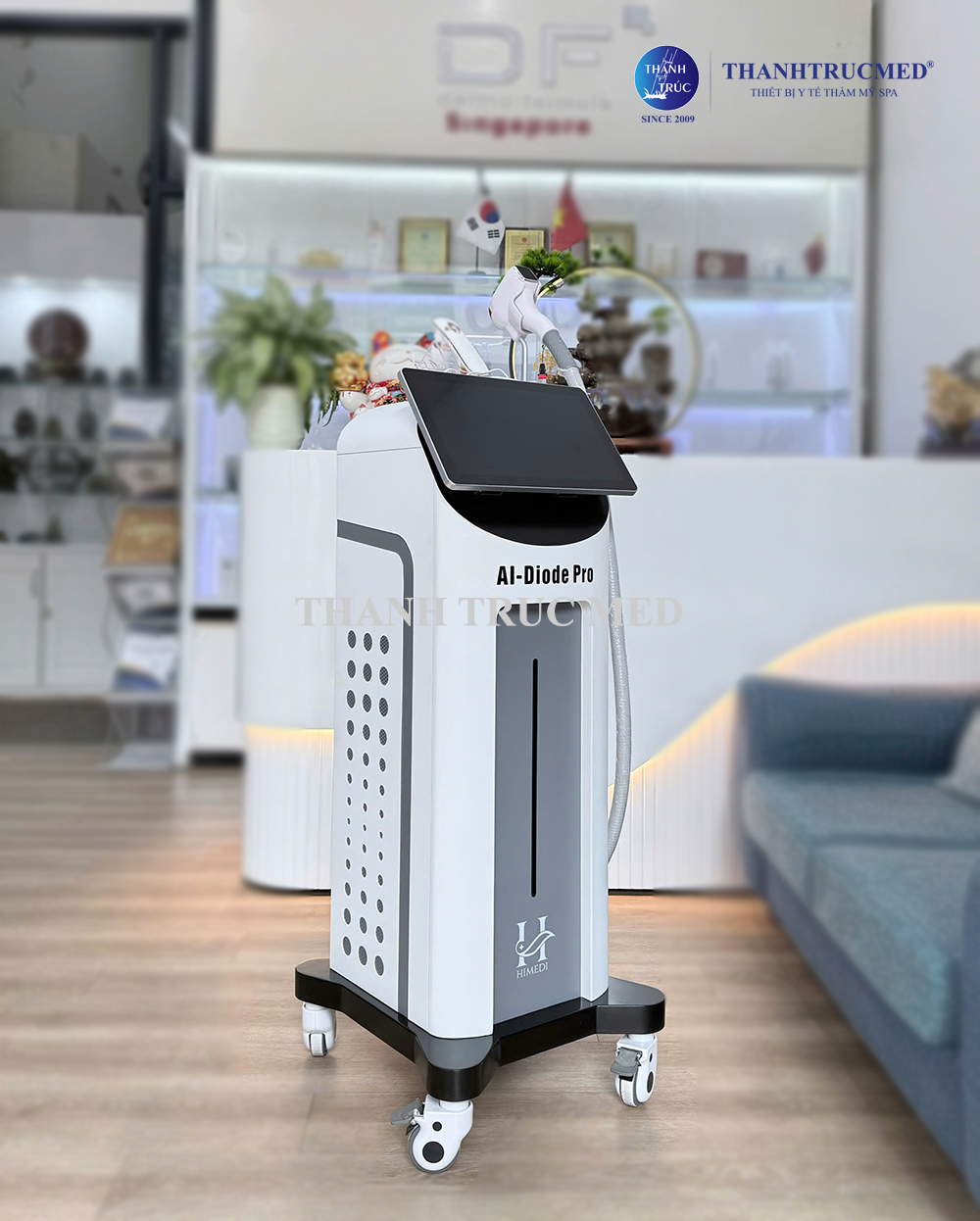 Máy triệt lông AI Diode Pro HIMEDI công nghệ cao, đa bước sóng, hiệu quả và an toàn cho spa. Liên hệ Thanh Trúc Med để được tư vấn chi tiết.