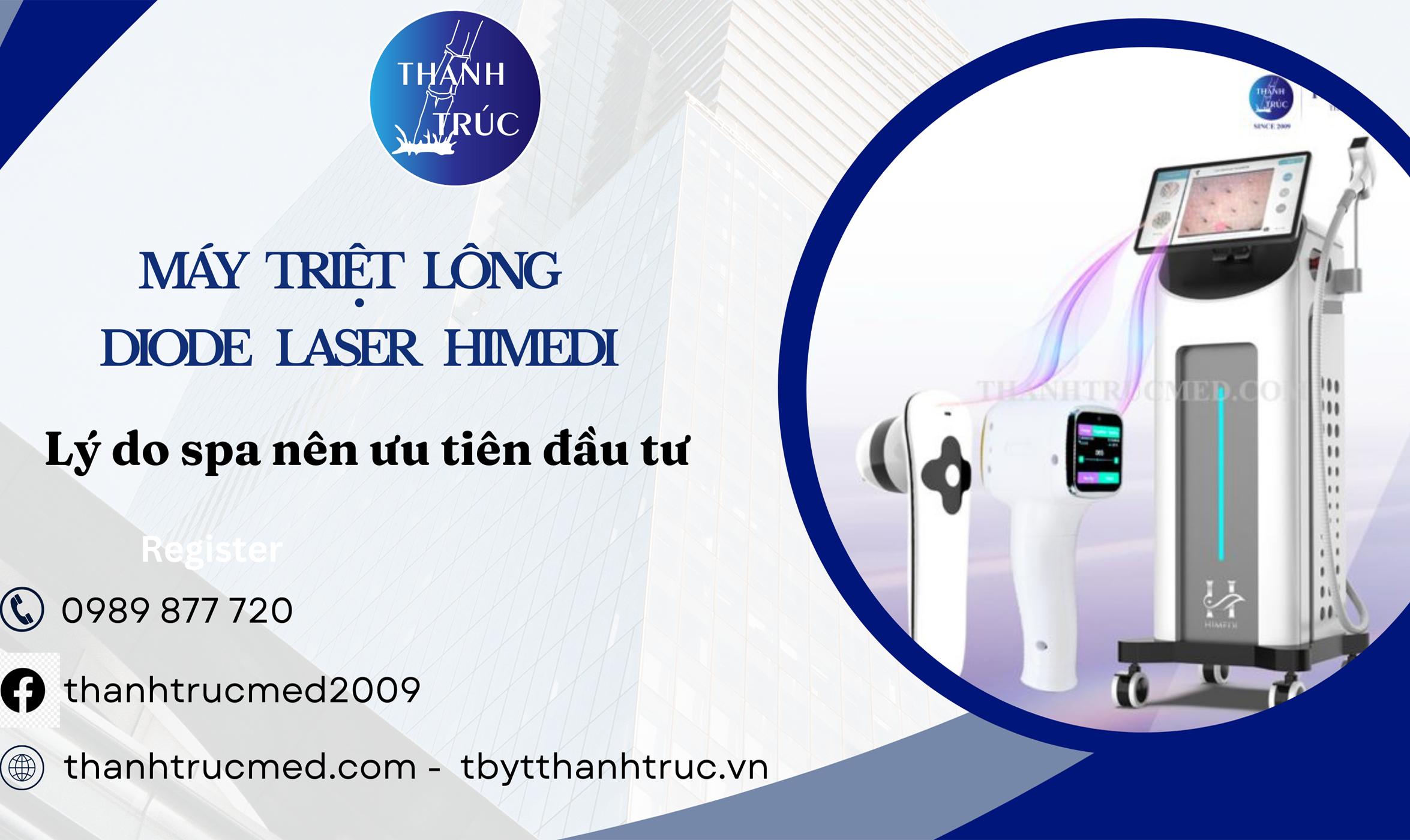 Thiết bị y tế thẩm mỹ Thanh Trúc là đơn vị phân phối máy triệt lông Diode Laser Himedi chính hãng, cung cấp giải pháp chuẩn y khoa cùng chính sách bảo hành – chuyển giao công nghệ rõ ràng. Liên hệ Thanh Trúc Med để được tư vấn dòng máy phù hợp nhất và xây dựng dịch vụ triệt lông hiệu quả, an toàn cho spa của bạn.