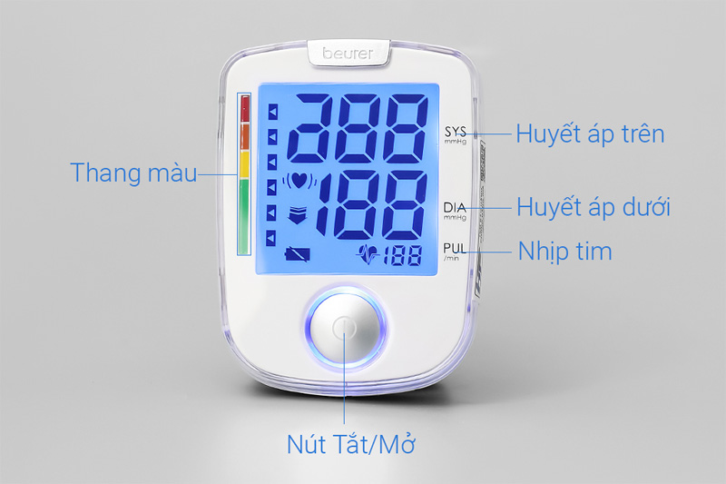 Màn hình hiển thị của máy đo huyết áp điện tử sẽ trả về cho người dùng chỉ số huyết áp tối đa (tâm thu), đo huyết áp tối thiểu (tâm trương), nhịp tim, thời gian ngày tháng đo để bạn có thể theo dõi huyết áp trong thời gian dài.