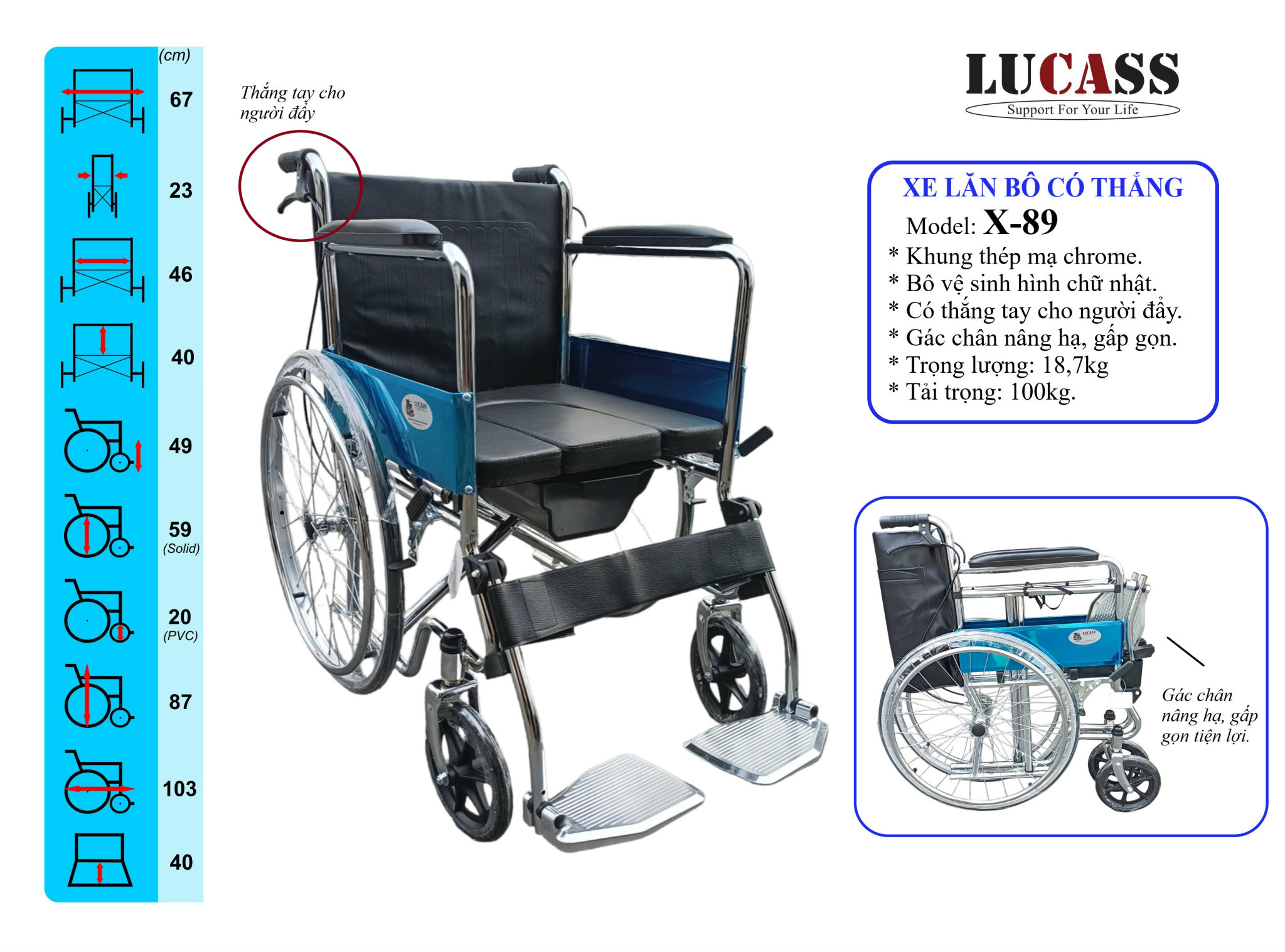 + Xe được trang bị thêm thắng tay cho người đẩy giúp đảm bảo an toàn hơn khi lên xuống dốc.