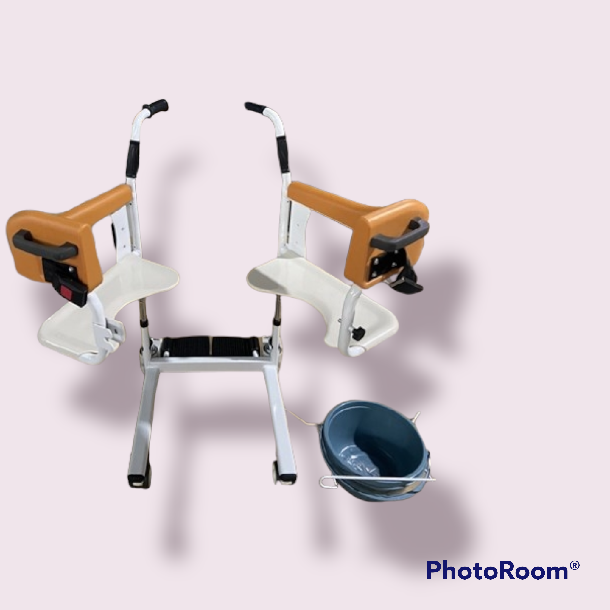 Xe lăn đa năng có thể tách rời thành 2 mảnh, sử dụng tay quay để nâng hạ bệnh nhân, từ đó giúp bệnh nhân dễ dàng ngồi lên mà không cần bê/vác, chất liệu thép cực dày, nhựa ABS chống nước, có bô vệ sinh và đệm lót. Sản phẩm thích hợp cho những bệnh nhân gặp khó khăn trong việc đi lại, giúp người nhà giảm bớt gánh nặng trong việc chăm sóc.