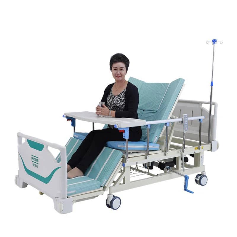 | Chức năng | Nâng đầu giường: 0-80° (±5) Nâng chân giường: 0-35° (±5) Phạm vi nâng chân: 0-55° (±5) Nghiêng trái, phải: 0-35° (±5) 4 Tay quay Cây truyền dịch, bô vệ sinh Thau gội đầu Bàn ăn tháo lắp Ngồi lên để ăn uống tại giường |
