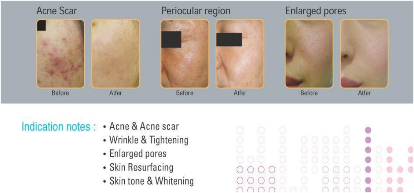 Scanxel R Fractional CO: Điều trị bằng laser ít gây tổn thương hơn các phương pháp điều trị không xâm lấn khác và hiệu quả hơn các phương pháp điều trị tái tạo bề mặt xâm lấn khác. Vì Scanxel R sử dụng chùm tia laser siêu nhỏ để điều trị nên quá trình phục hồi diễn ra nhanh chóng.