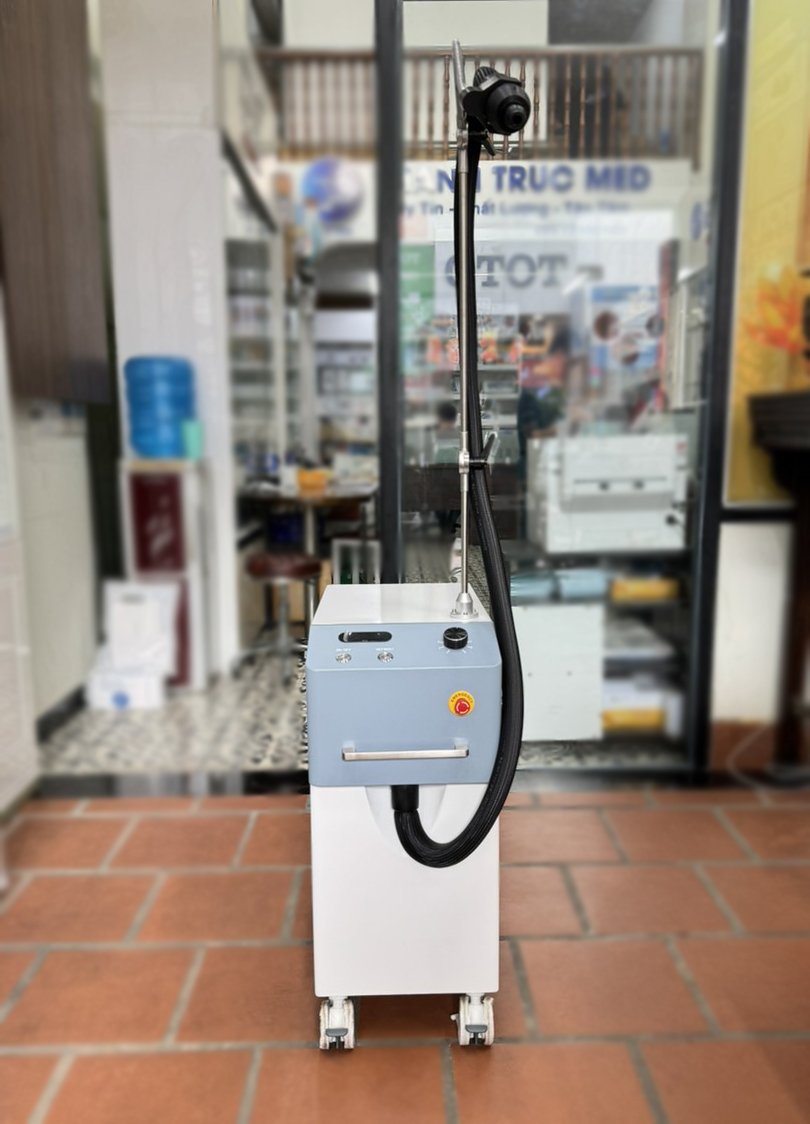 - Máy có thể tạo ra gió làm mát liên tục đến mô đích để giảm thiểu đau và tổn thương nhiệt trong quá trình điều trị bằng laser và IPL, giúp giảm đau tạm thời khi tiêm mỹ phẩm.