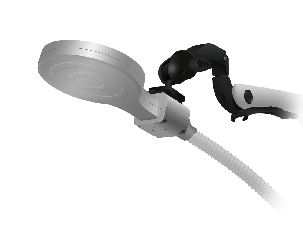 Thiết bị được trang bị cánh tay linh hoạt với khả năng xoay 360 độ, 5 khớp điều chỉnh và đầu nối dạng cầu, cho phép kiểm soát hướng điều trị toàn diện, thuận tiện trong việc điều trị ở nhiều góc độ khác nhau.