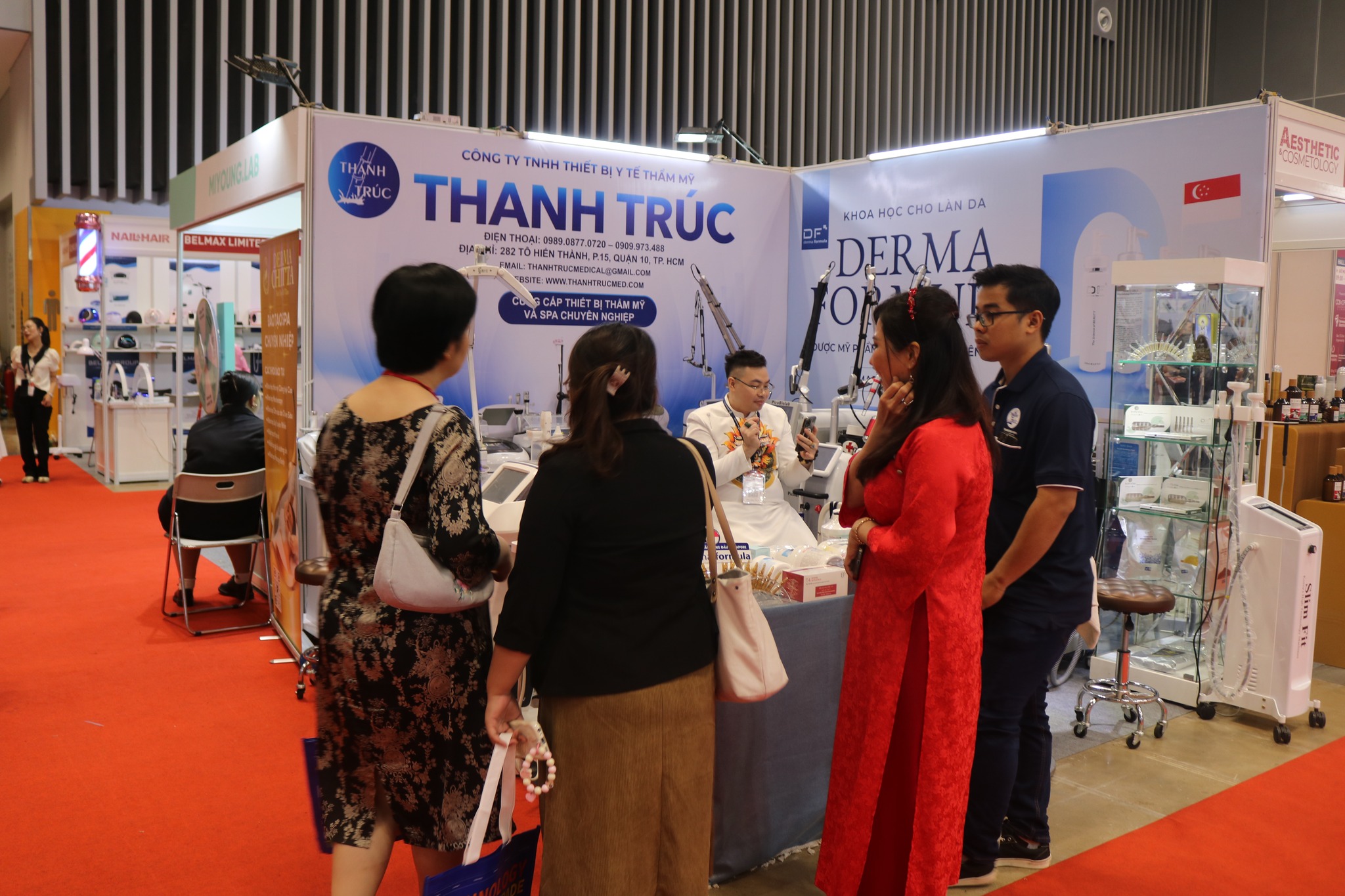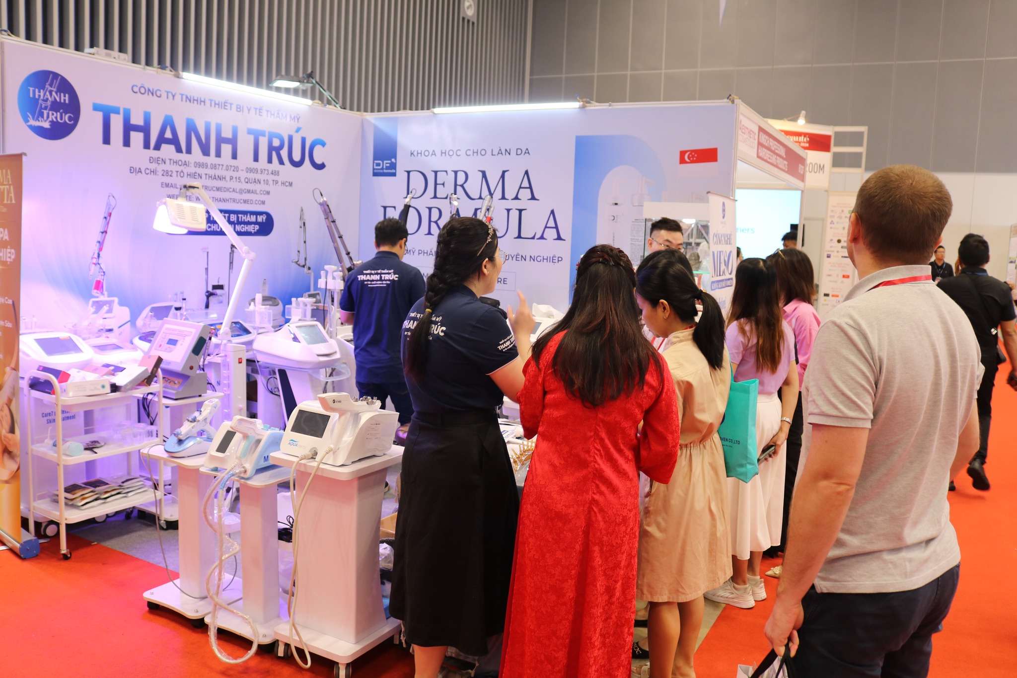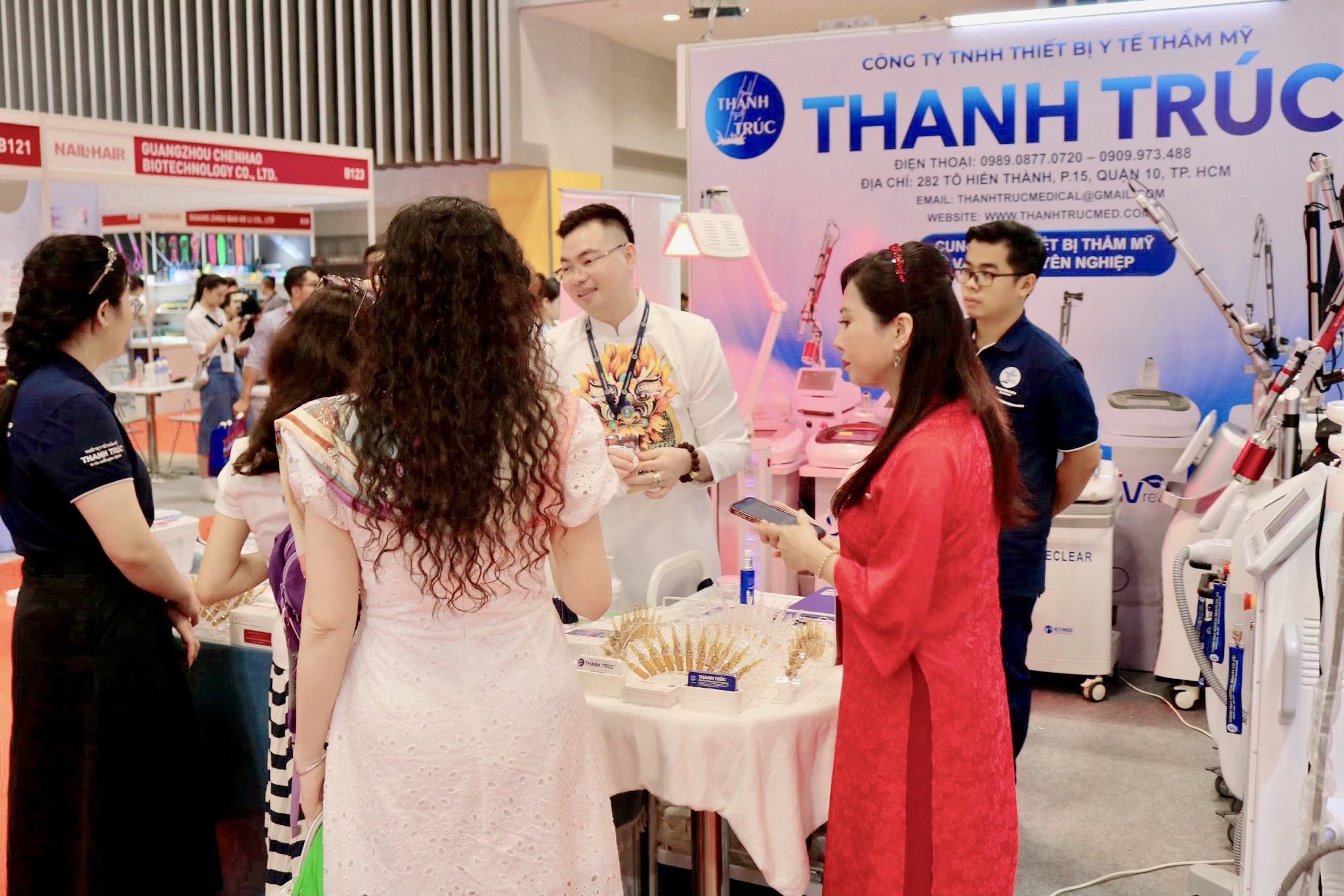 Thanhtrucmed tại triển lãm VIETBEAUTY COSMOBEAUTÉ VIETNAM 2024 đã thu hút đông đảo khách tham quan bởi thiết kế hiện đại và sản phẩm công nghệ cao, mà còn bởi những trải nghiệm trực tiếp và chương trình ưu đãi đặc biệt. Đây chính là cơ hội để Thiết bị y tế thẩm mỹ Thanh Trúc khẳng định vị thế tiên phong trong lĩnh vực thiết bị spa thẩm mỹ.