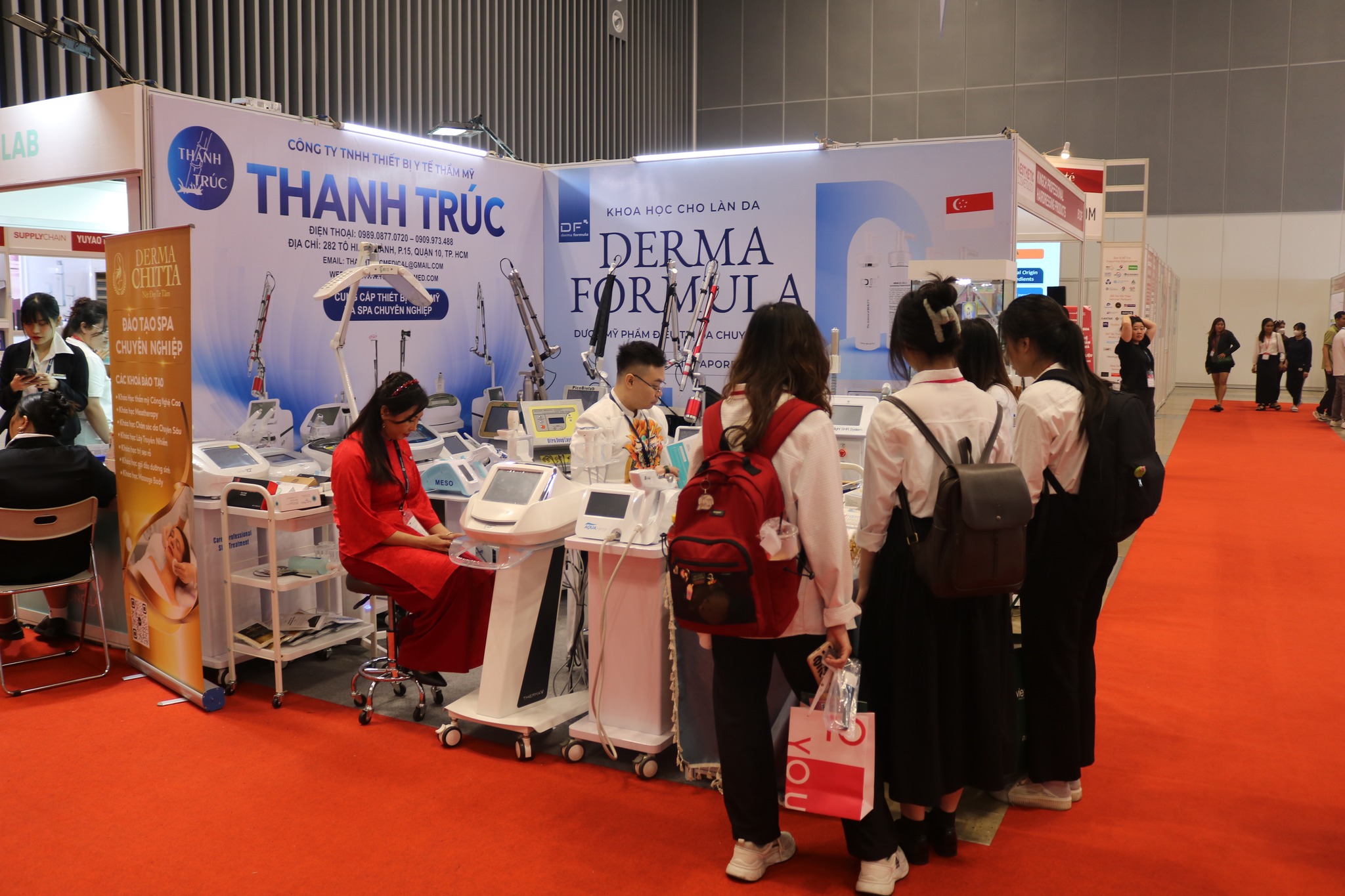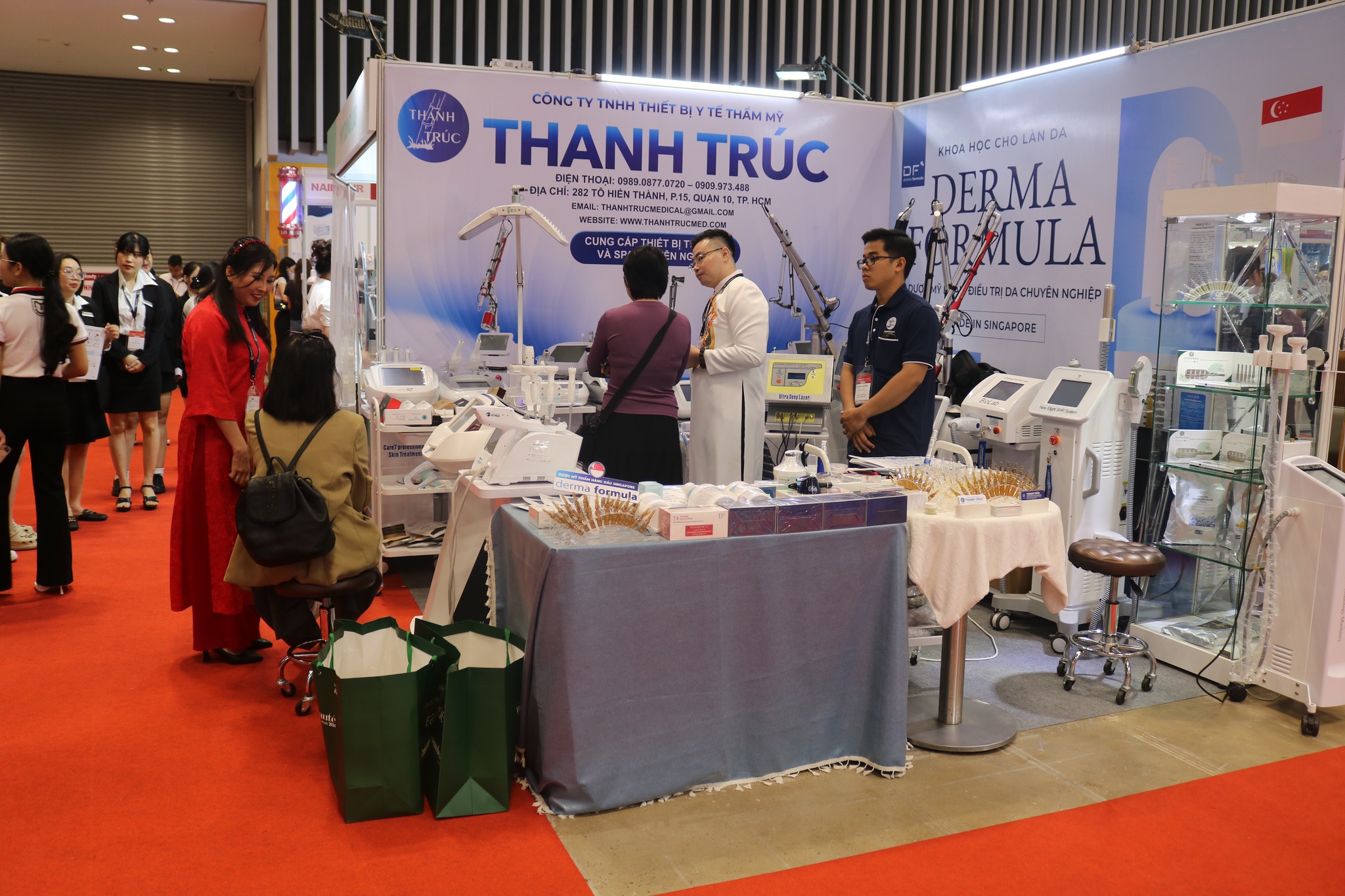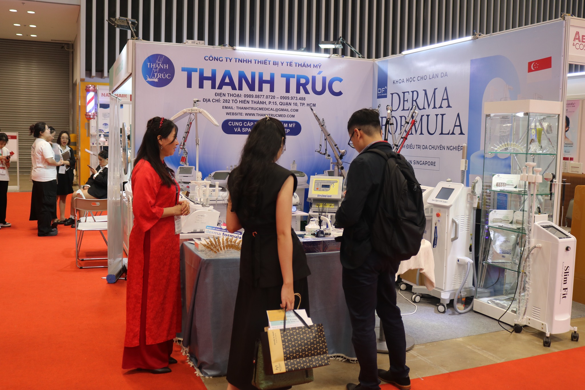 Thanhtrucmed tại triển lãm VIETBEAUTY COSMOBEAUTÉ VIETNAM 2024 đã thu hút đông đảo khách tham quan bởi thiết kế hiện đại và sản phẩm công nghệ cao, mà còn bởi những trải nghiệm trực tiếp và chương trình ưu đãi đặc biệt. Đây chính là cơ hội để Thiết bị y tế thẩm mỹ Thanh Trúc khẳng định vị thế tiên phong trong lĩnh vực thiết bị spa thẩm mỹ.