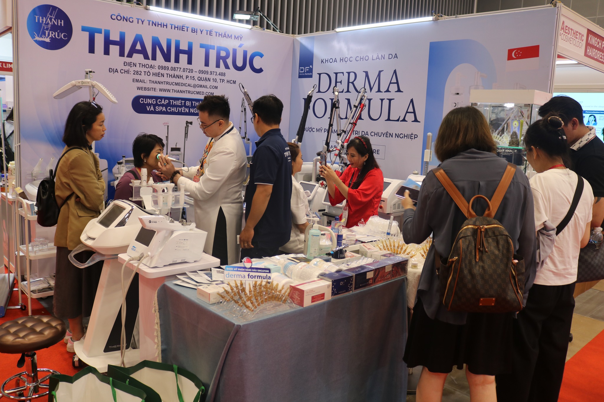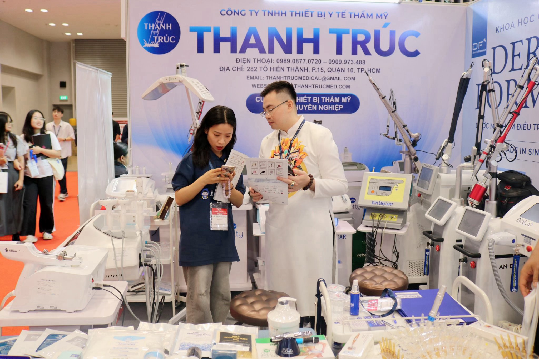 Thanh Trúc Med mang đến triển lãm một loạt các thiết bị thẩm mỹ và spa công nghệ cao. Các sản phẩm này không chỉ được trưng bày mà còn có các buổi thử nghiệm trực tiếp để khách hàng có thể thấy rõ hiệu quả và tính năng của từng sản phẩm.