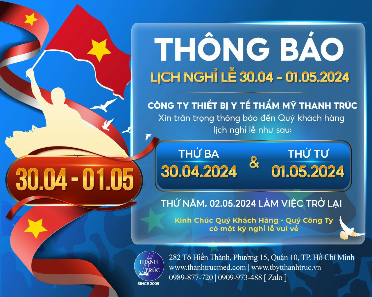 THÔNG BÁO LỊCH NGHỈ LỄ 30/04 - 01/05/2024
